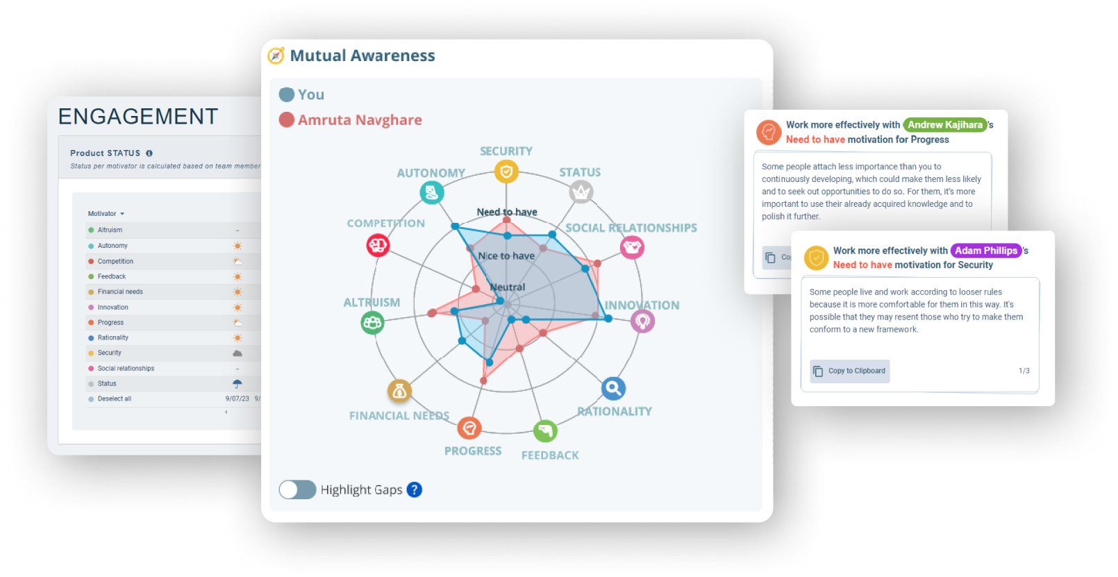 Attuned helps establish a shared language and rapport between the new employee and their manager. Rather than spending months working through surface-level conversations, this allows a connection to develop more quickly, and training and meetings to be more tailor-made.