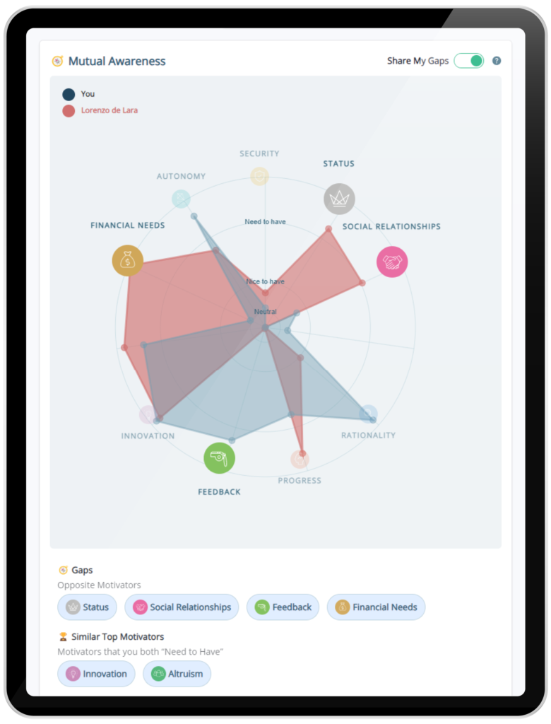 Attuned helps establish a shared language and rapport between the new employee and their manager. Rather than spending months working through surface-level conversations, this allows a connection to develop more quickly, and training and meetings to be more tailor-made.