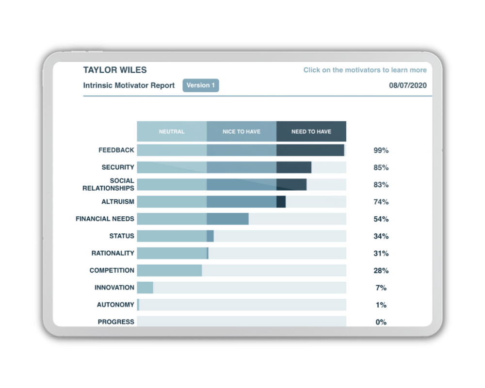 When people first take the Attuned Motivation Assessment and see words like “Financial Needs” and “Status”, it’s understandable that they might jump to conclusions as to what those terms mean. Similarly, some might see that they have low scores for certain Motivators and think that this is a reason to worry. For example, one engineer I spoke with who had just started his own business was concerned about his low score in Autonomy. But obviously this didn’t mean he couldn’t get work done by himself—just that it wasn’t a strong motivating factor for him.