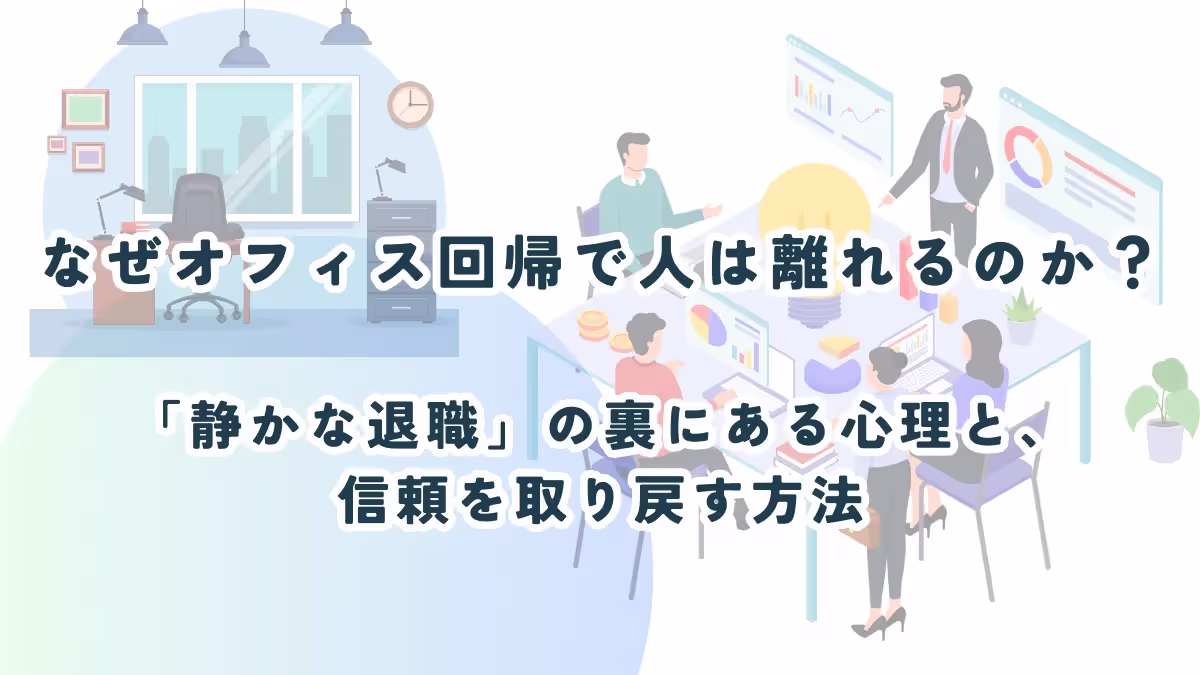 「久しぶりのオフィス出社、なんだか以前より活気がない気がする...」 「部下が指示されたことしかやらなくなった」 オフィス回帰が進む中で、ふとそんな違和感を覚えたことはありませんか? それはもしかすると、話題の「静かな退職(Quiet Quitting)」があなたのチームでも起きているサインかもしれません。本記事では、オフィス回帰が引き起こすこの現象の正体と、マネージャーが取るべき具体的なアクションについて解説します!