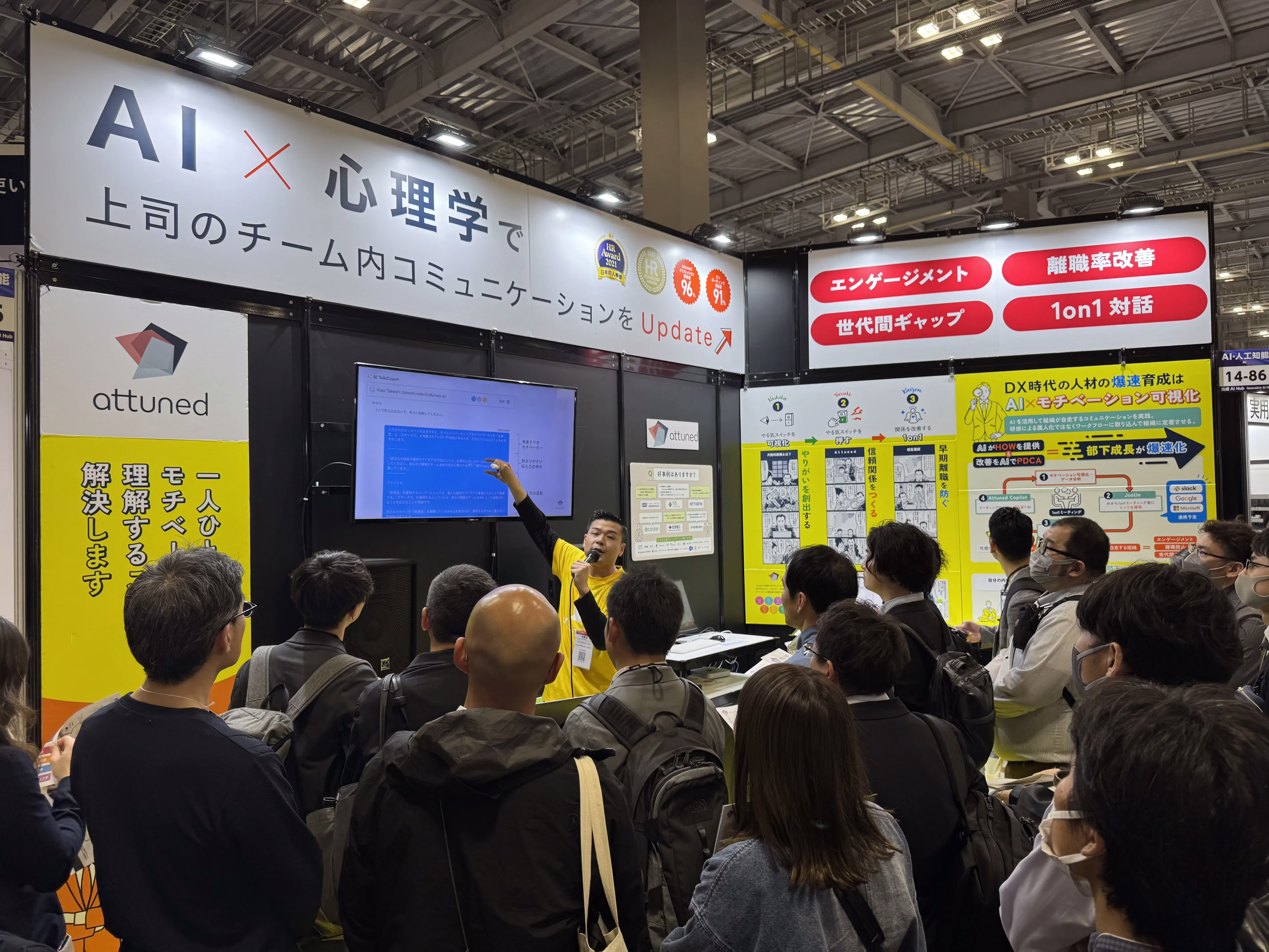 モチベーション可視化サービスAttunedは2024年5月8日(水)〜10日(金)東京ビックサイトにて開催された「東京 HR EXPO(人事労務・教育・採用)」に出展しました。