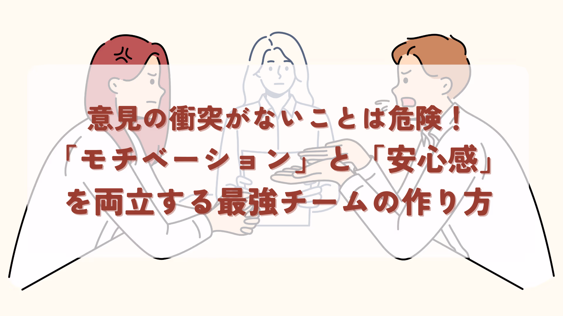 モチベーションの違いに気づき、それを共有し、互いの価値観を受け止め合う安心感があれば、チーム内の対立は、単なる感情的なぶつかり合いから、**建設的な対話****へと進化していきます。**そして、そのような対話の積み重ねこそが、変化に強く、多様な意見を力に変える、最強のチームづくりへと繋がっていくのではないでしょうか。