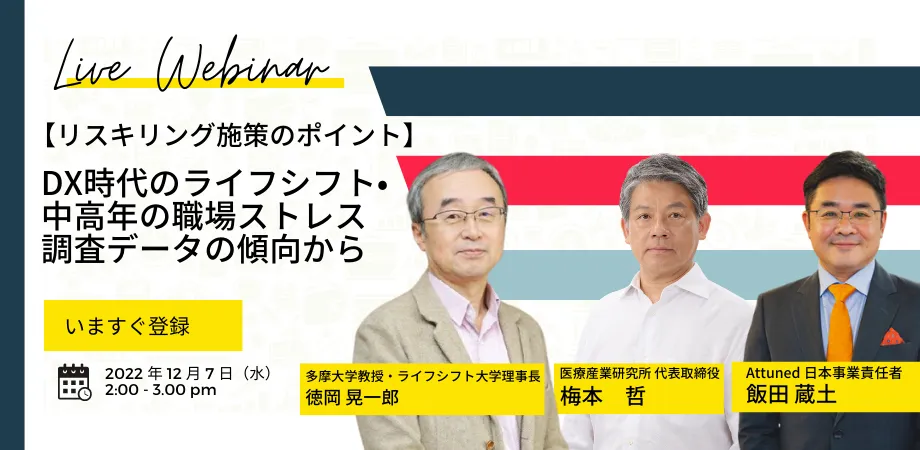 大学や企業でのリーダーシップ教育に携わる小杉俊哉 氏、オーセンティックリーダーシップを企業CxOに伝える川嶋治子 氏、1on1ミーティングを通じた人材育成に携わる堀井 耕策 氏をお迎えし、内発的動機の可視化ソフトウェア・サービス Attuned 日本事業部長 飯田 蔵土 がモデレーターとなり、それぞれの立場から、次世代のリーダーシップ人材の育成に必要な観点をお伺いしていきます。...
