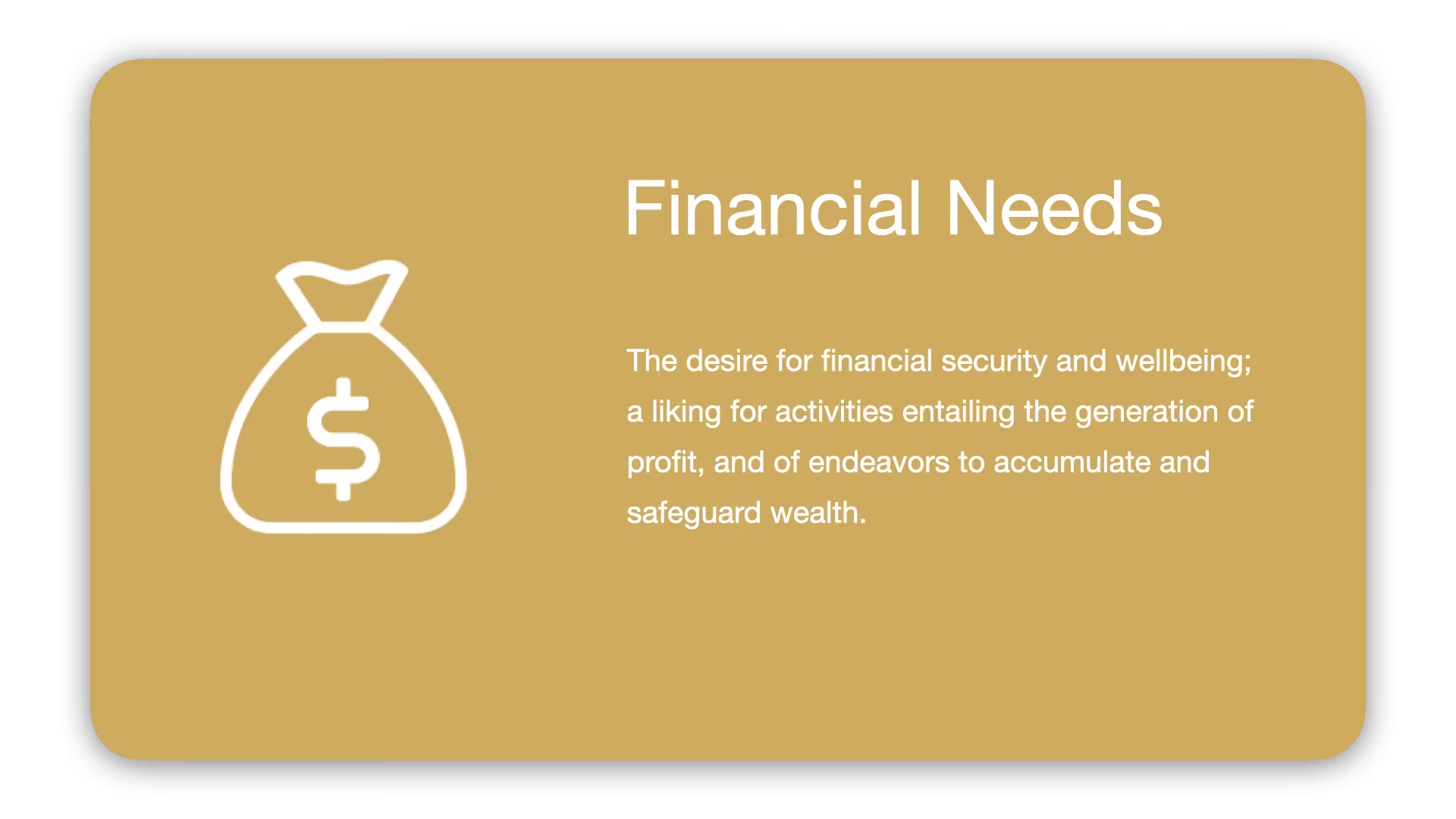 Here at Attuned, though, the definition of Financial Needs is a little bit different. We interpret it as: