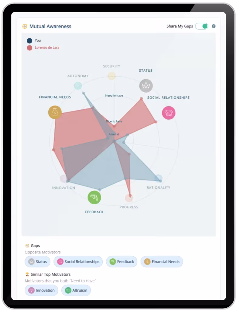 Attuned helps establish a shared language and rapport between the new employee and their manager. Rather than spending months working through surface-level conversations, this allows a connection to develop more quickly, and training and meetings to be more tailor-made.
