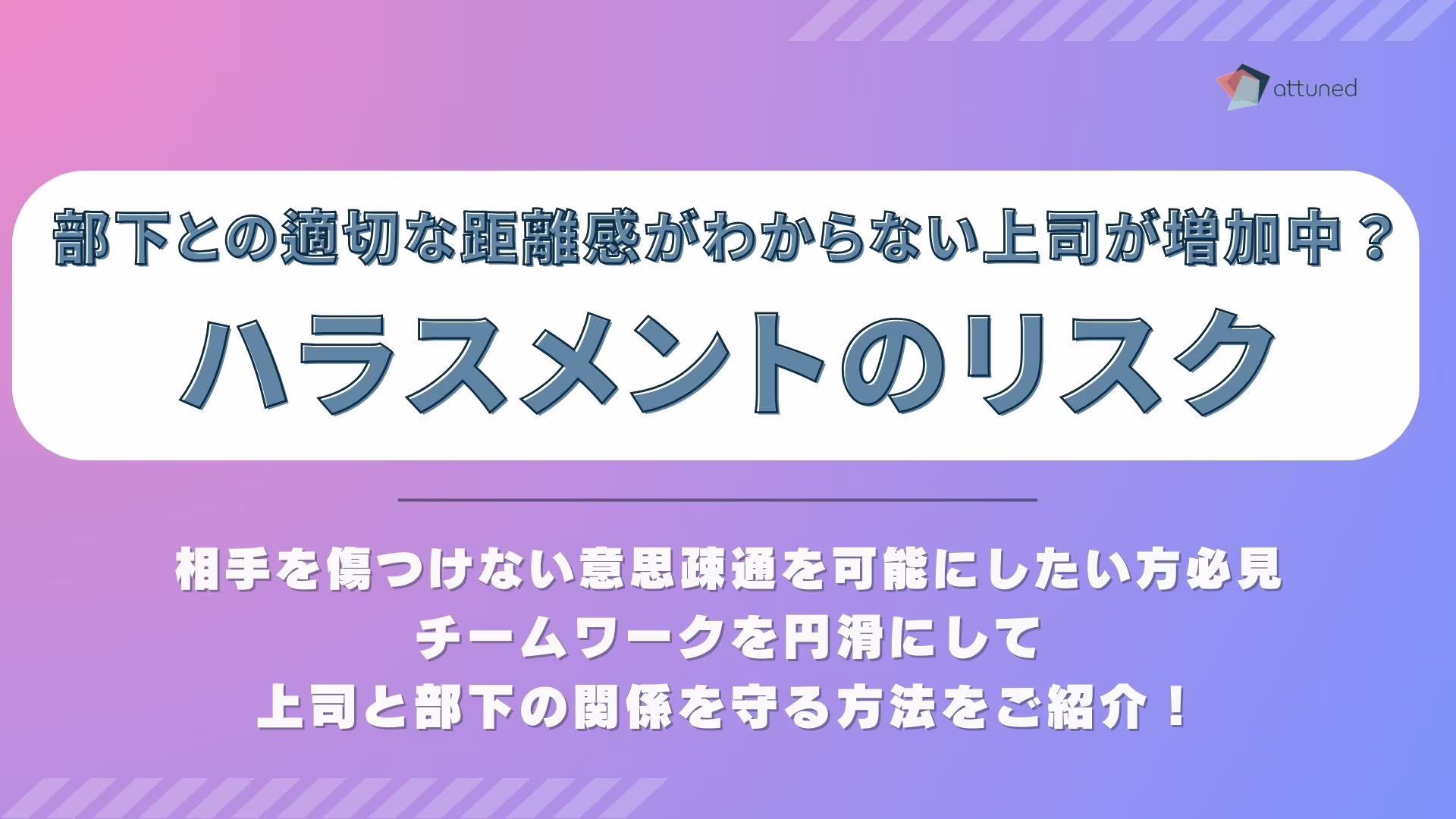 ハラスメントへの配慮が求められる時代、さまざまなリスクが発生し、徐々に部下と距離をとる上司も増加しています。