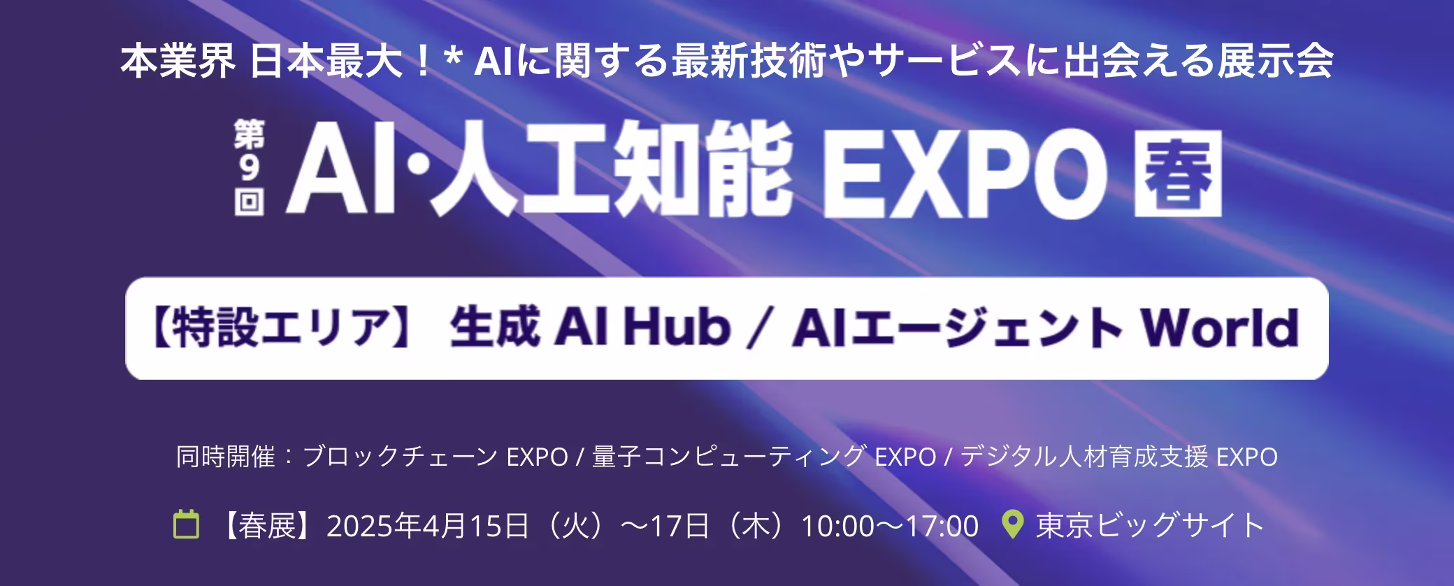 「Nextech Week 2025 AI・人工知能EXPO」に来場される方々に、当社のサービスやデータをお伝えできることを楽しみにしています。