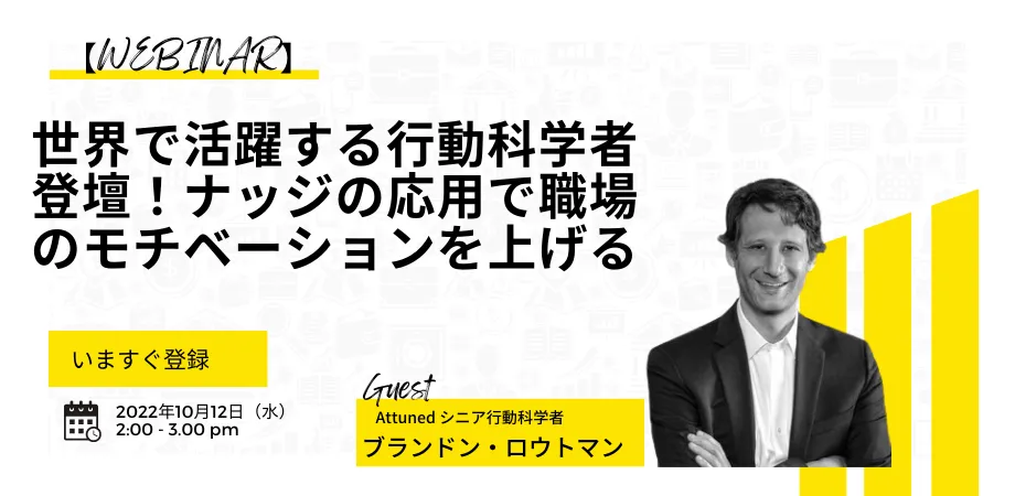 英国 Behavioural Insights Team(2010年英国内閣の下に成立)に所属、米国内で多くのナッジプロジェクトに携わった経験を持つ、Attunedシニア行動科学者のブランドン・ロウトマン氏より、モチベーション向上に行動科学からアプローチする方法についてレクチャーいただきます!...