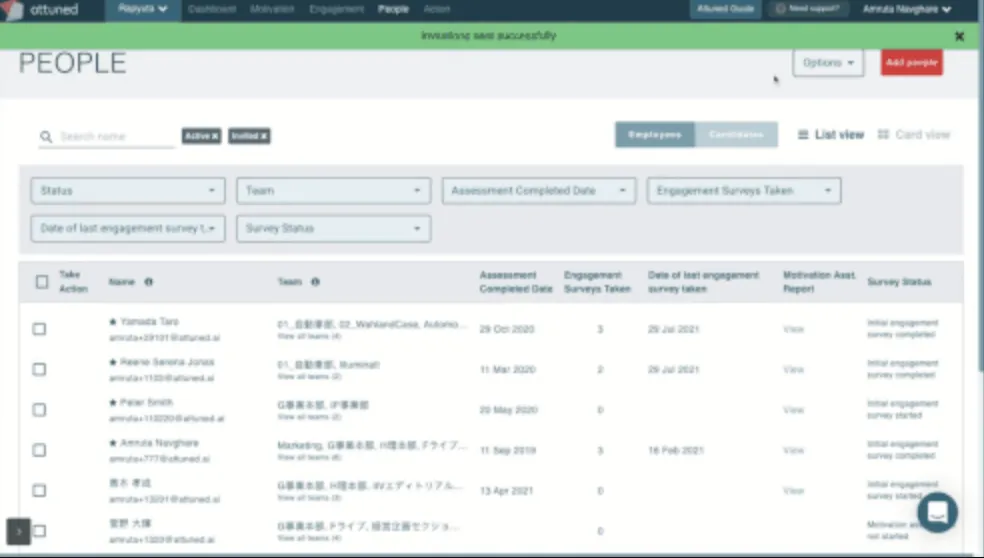 一部のお客様、特に採用プロセスでAttunedをご利用いただいているお客様から、社員や採用候補者がモチベーション・アセスメントの受検を終了した際に、招待者に受検完了通知メールを送るオプションを追加してほしいとご要望をいただきました。