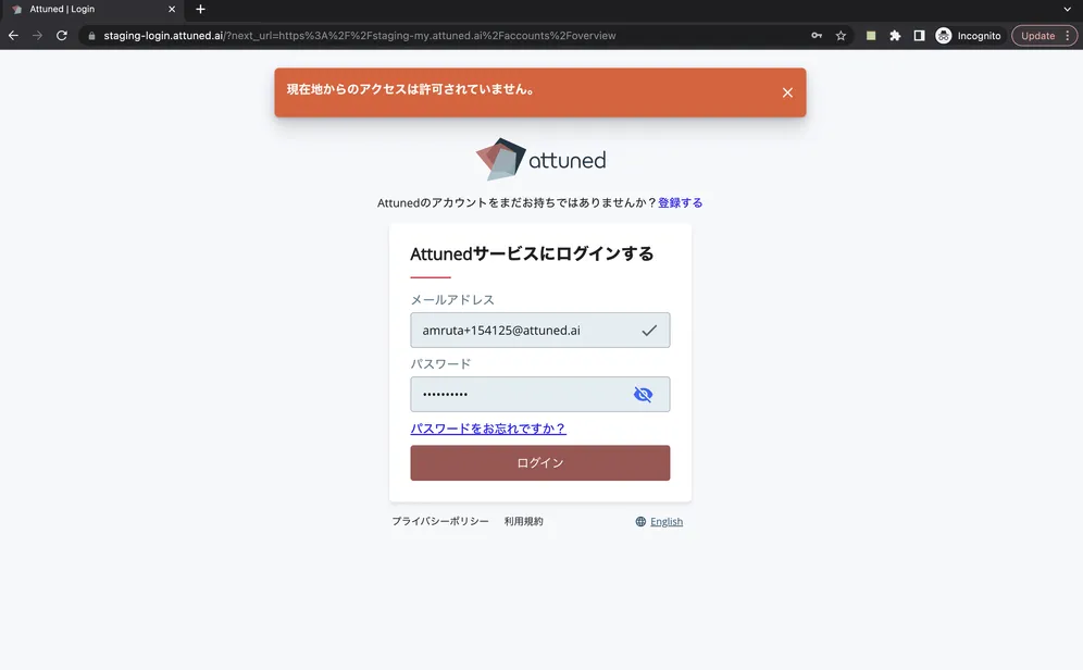 許可されたIPアドレスのみが、そのアカウントでAttunedにアクセスできるようになります。
